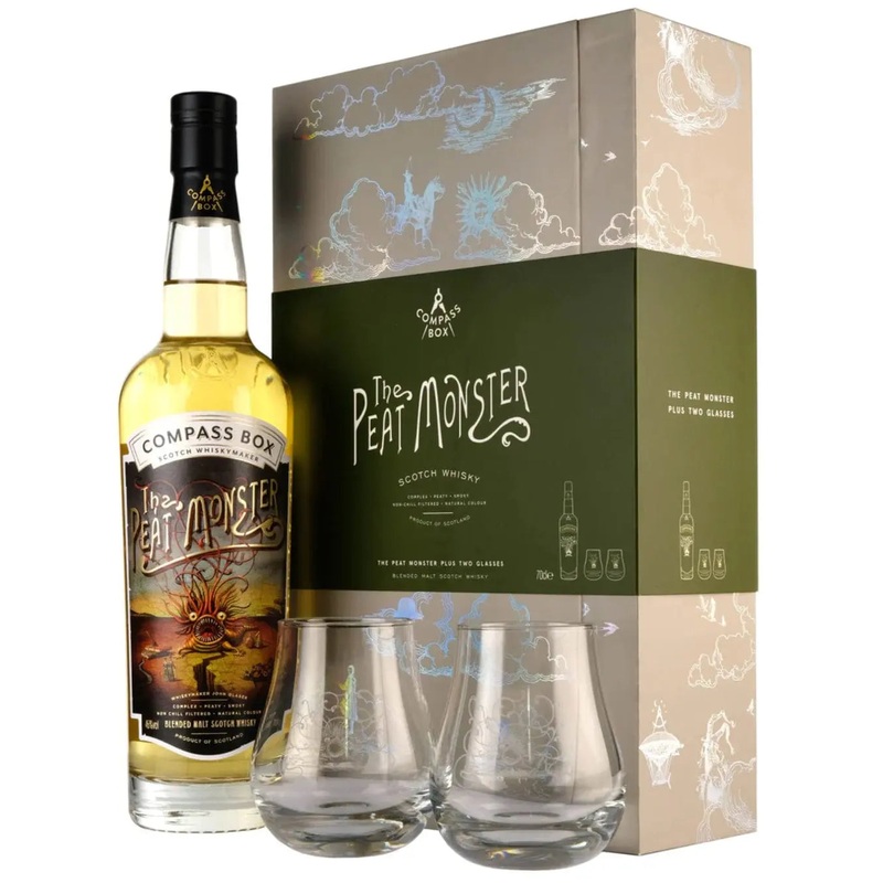 Encompass your senses in The Peat Monster Blended Whisky Gift Set, brought to you by the world-renowned alcohol pioneers, Compass Box. This beautiful gift set provides a bottle of 70 cl of The Peat Monster, a smoky, peaty blended malt whisky.###Product Des