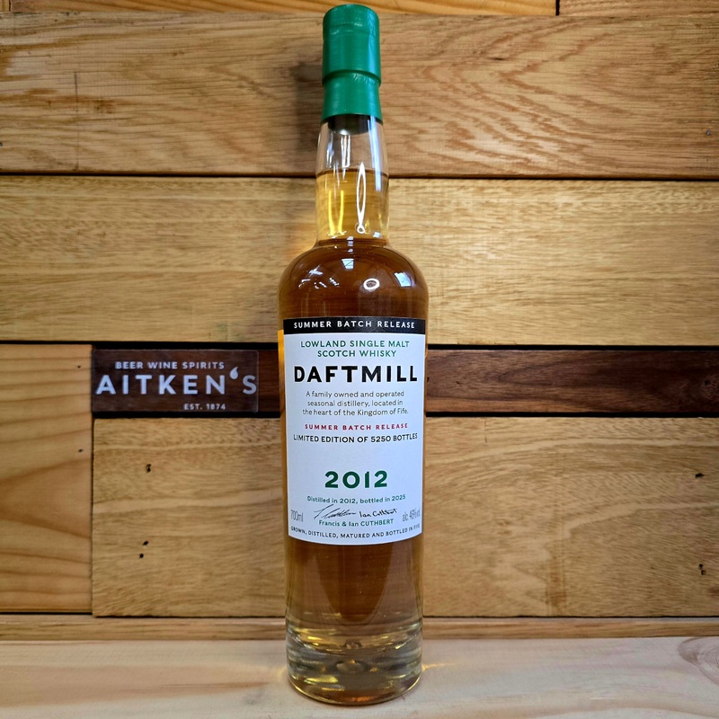AVAILABLE NOW!SpiritWhiskyStyleLowlandWhere's it from?Cupar, Fife,ScotlandVolume70clABV46%Pairing/GarnishBest enjoyed with a splash of water.This Summer 2012 batch of Daftmill was released on 21st July 2025, with only 5250 bottles available."The barley var
