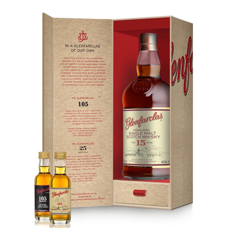 Here we have a 2022 release from Glenfarclas, this is a super-handsome gift set comprising a full bottle of Glenfarclas 15 year old and miniature bottles of both the powerful 105 and the tasty 25 year old. All neatly contained in a gorgeous box, this would