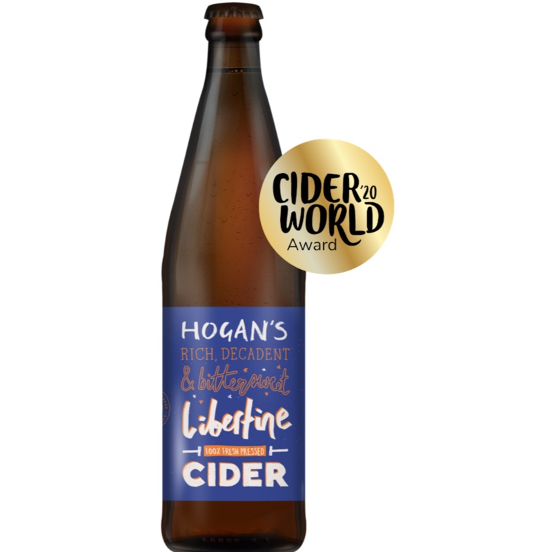 Indulgent, sweetly satisfying cider. Burnt umber in colour, dark, bittersweet, warming Libertine is a rich, tannic cider with unusual depth. Satisfying, exotic and grown up (but a bit on the fringes)….wild, radical, brooding and delicious. This cider has won 4 international gold medals over the past two years together with Best in Class.
