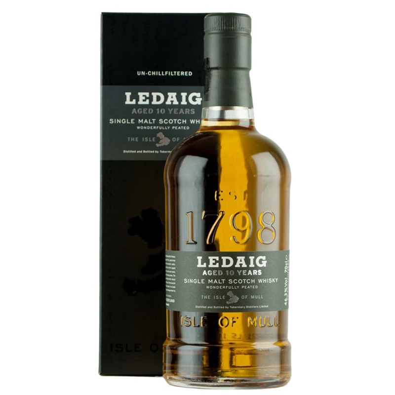 Ledaig 10 Year Old Single Malt WhiskyThe nose is quite light and well-balanced. There is a very soft peat with a gentle smoke. Notes of barley and malt extract with walnut and pine oil and a hint of iodine with notes of dried fruit and nuts. The palate is