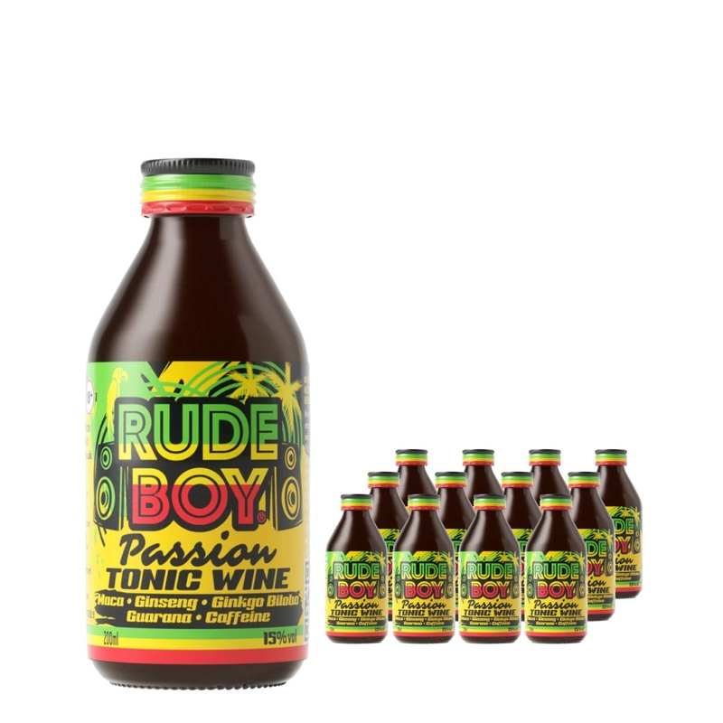 Rude Boy Passion Tonic Wine is a vibrant and invigorating tonic wine with a tropical twist. Infused with Maca, Ginseng, Ginkgo Biloba, Guarana, and Caffeine, this 15% ABV tonic wine delivers a bold, fruity flavor while providing an energizing boost. Perfect for adding a little extra passion to your night out or just for enjoying on its own.