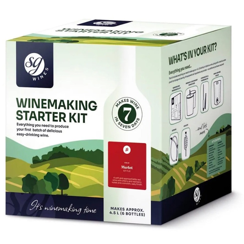 Enjoy wine? Youll love making your own! The SG Wines Winemaking Starter Kit includes everything you need to produce your first batch of delicious and easy-drinking Merlot-style wine in just 7 days. With nothing to add but water, this kit contains all the w