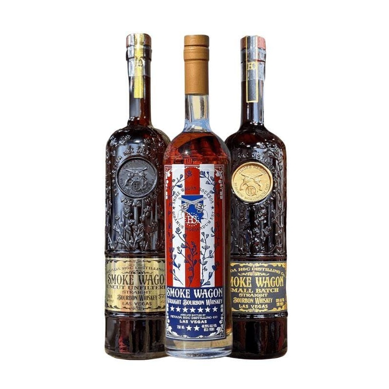 Smoke Wagon Limited Edition Red White & Blue & Uncut The Younger Bundle Includes:(1) Smoke Wagon Uncut Unfiltered Bourbon Whiskey 750mL(1)Smoke Wagon Straight Bourbon Red White & Blue Fourth of July Limited Edition 750mL(1)Smoke Wagon Small Batch Bourbon W
