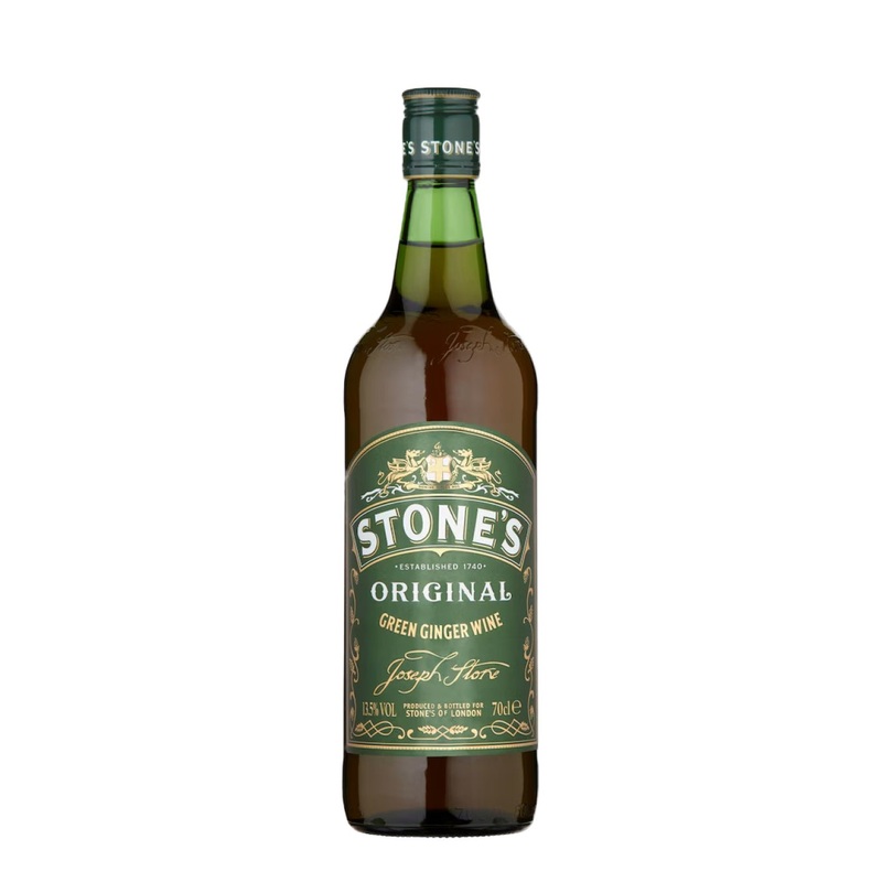Stone's Original Green Ginger Wine, 70 cl, is a classic and distinctive fortified wine established in 1740, renowned for its warming ginger kick. This traditional English ginger wine offers a unique blend of spice and sweetness, making it a versatile choic