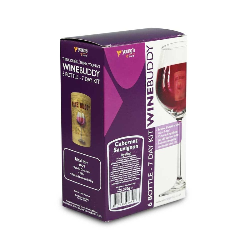 The WineBuddy range of homebrew wine kits will make you 6 Bottles of commercial strength wine in just 7 days. Making your own wine at home has never been easier! The only other ingredients you need are 900g of Brewing Sugar and water.Cabernet Sauvignon:A t